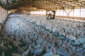 FACTORY FARM: A factory that makes a lot of farms, assembly-line style. Nice try. Factory farming is industrialized farming. Livestock or chickens are raised in dark confinement (in cages or barren plots), too close together, making them suseptible to disease. As a result, the animals are fed a steady diet of antibiotics. This is why grass-fed is better. Better for the animal and better for you.