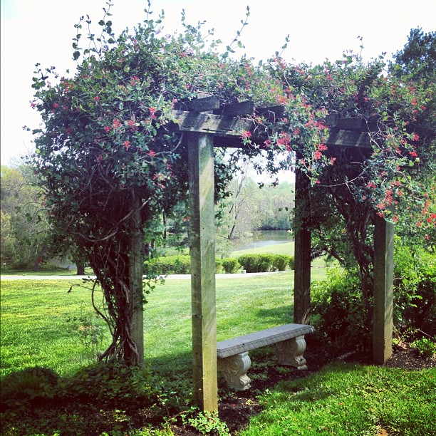 Not too far from the vineyard is the sweetest arbor. The bench beneath it cried out for a photo shoot.