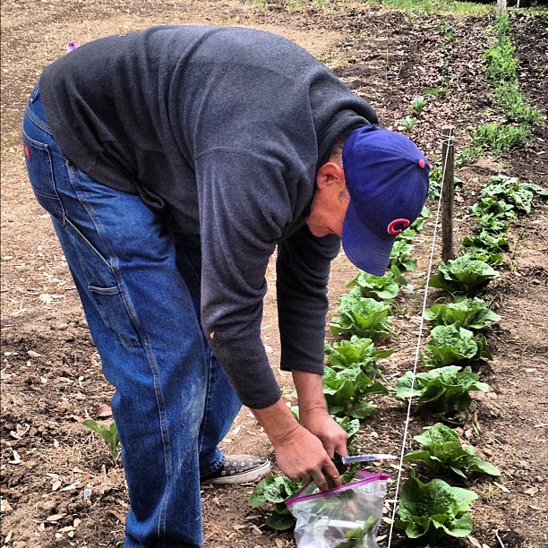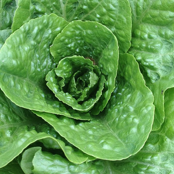 I received two very good gifts this week. Gifts are always good, but these were very good because they involved food: eggs from Valerie and greens from John. What a perfect combination for an easy weeknight frittata and green salad! After visiting John’s backyard where he cut me some spinach and romaine, I took to the kitchen.