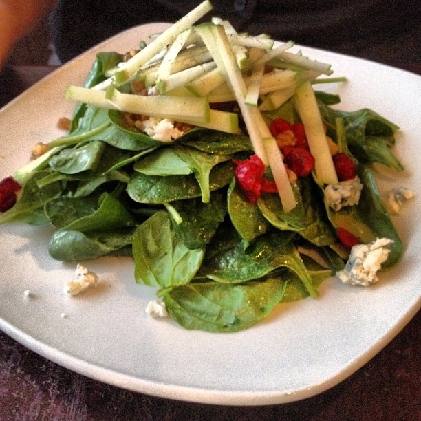 Twelves Spinach Salad ← Previous Next → Baby Spinach Salad with green apples, dried cranberries, buttermilk bleu cheese, tossed in shallot dijon dressing