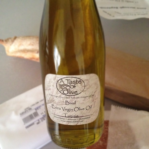 Next to the bread is a display of balsamic vinegars and oils from A Taste of Olive based in West Chester, PA. The basil olive oil caught my attention right away. I tasted it (thanks to the tiny cups on hand for just that purpose) and fell in love, swooning when I imagined a perfectly ripe summer tomato doused with the golden green basil goodness.