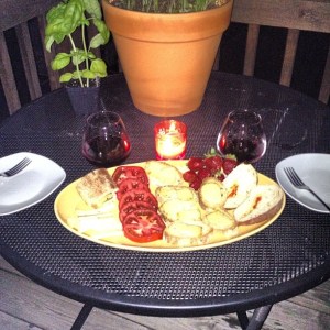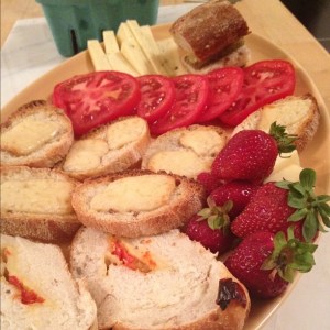Mostly local cheese plus local bread, strawberries and tomatoes. What else could I possibly need? Oh yeah, wine. See next photo.