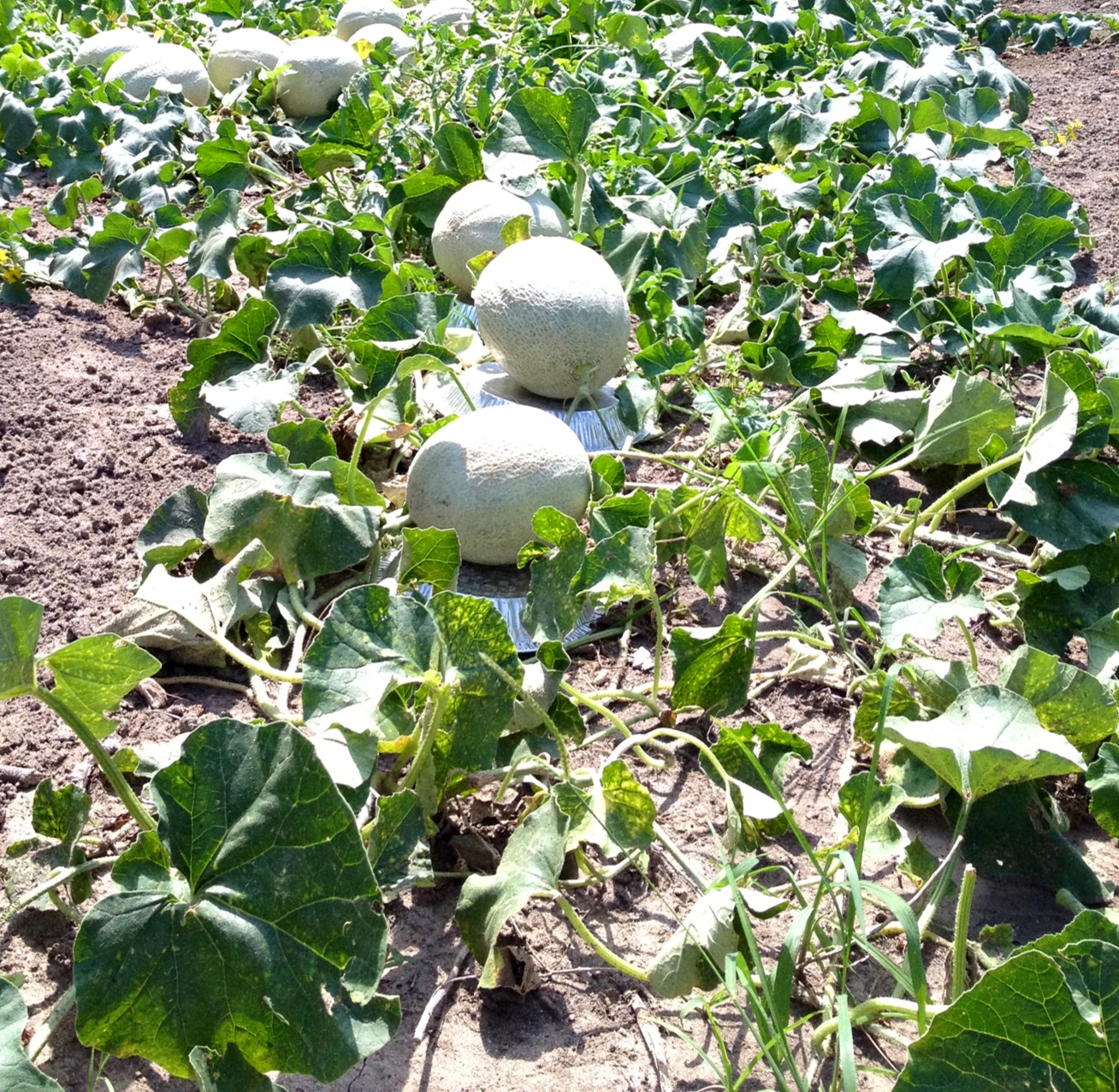 In the adjacent plot, light green cataloupes soaked up the sun, looking delicious already.