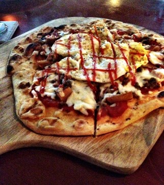 Nicole’s a regular at 1861 and has always wanted to try the Scrapple Pizza. Yes, that’s right, SCRAPPLE. For those of you not from the Mid-Atlantic region, scrapple is a pork product traditionally served for breakfast. Kind of like sausage (but not really) in loaf form. I don’t usually eat it, but I’m up for anything local, so we ordered one. Topped with fried eggs and artfully doused with ketchup, Scrapple Pizza is a delicious take on breakfast, complete with hashbrowned potatoes.