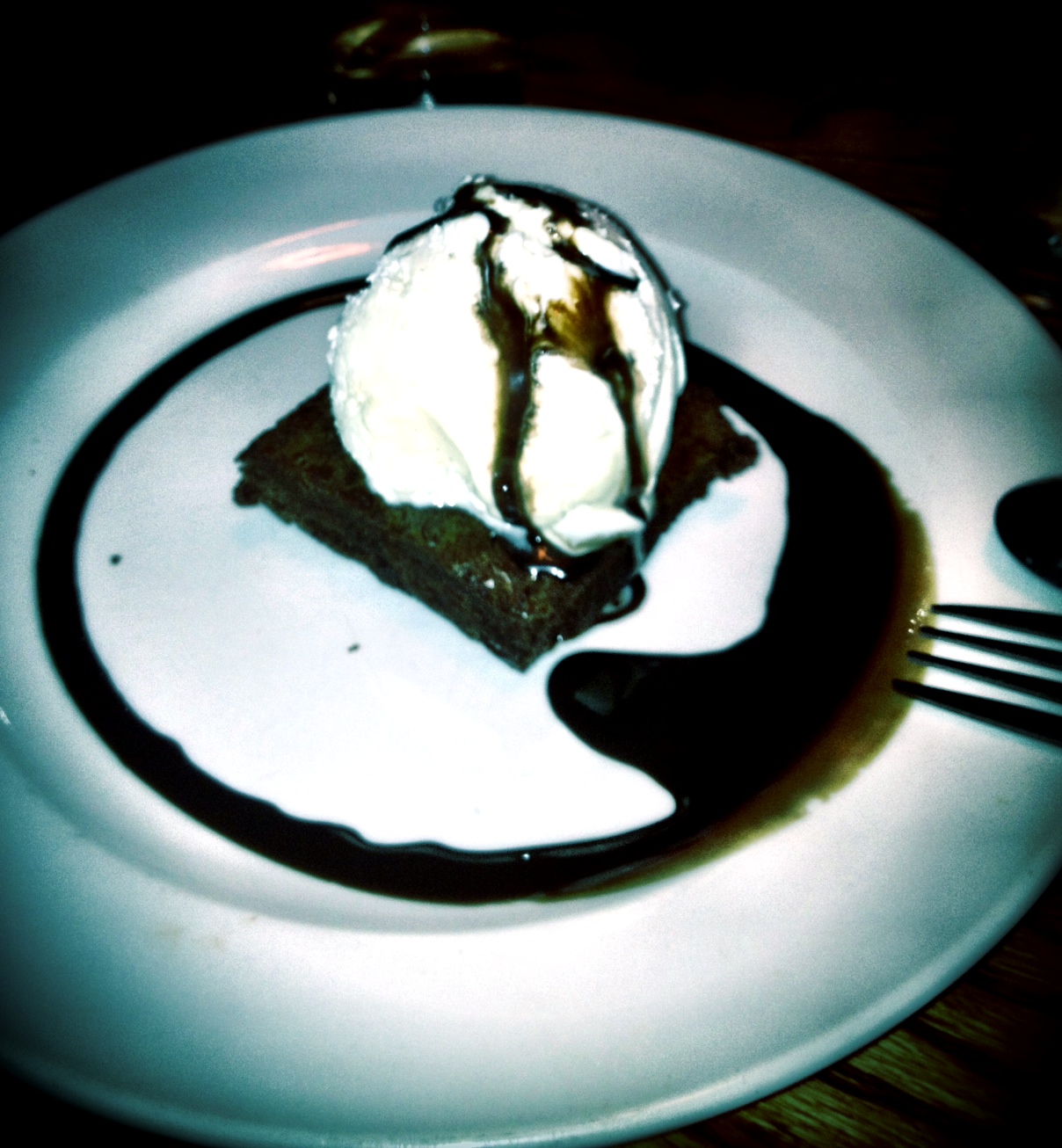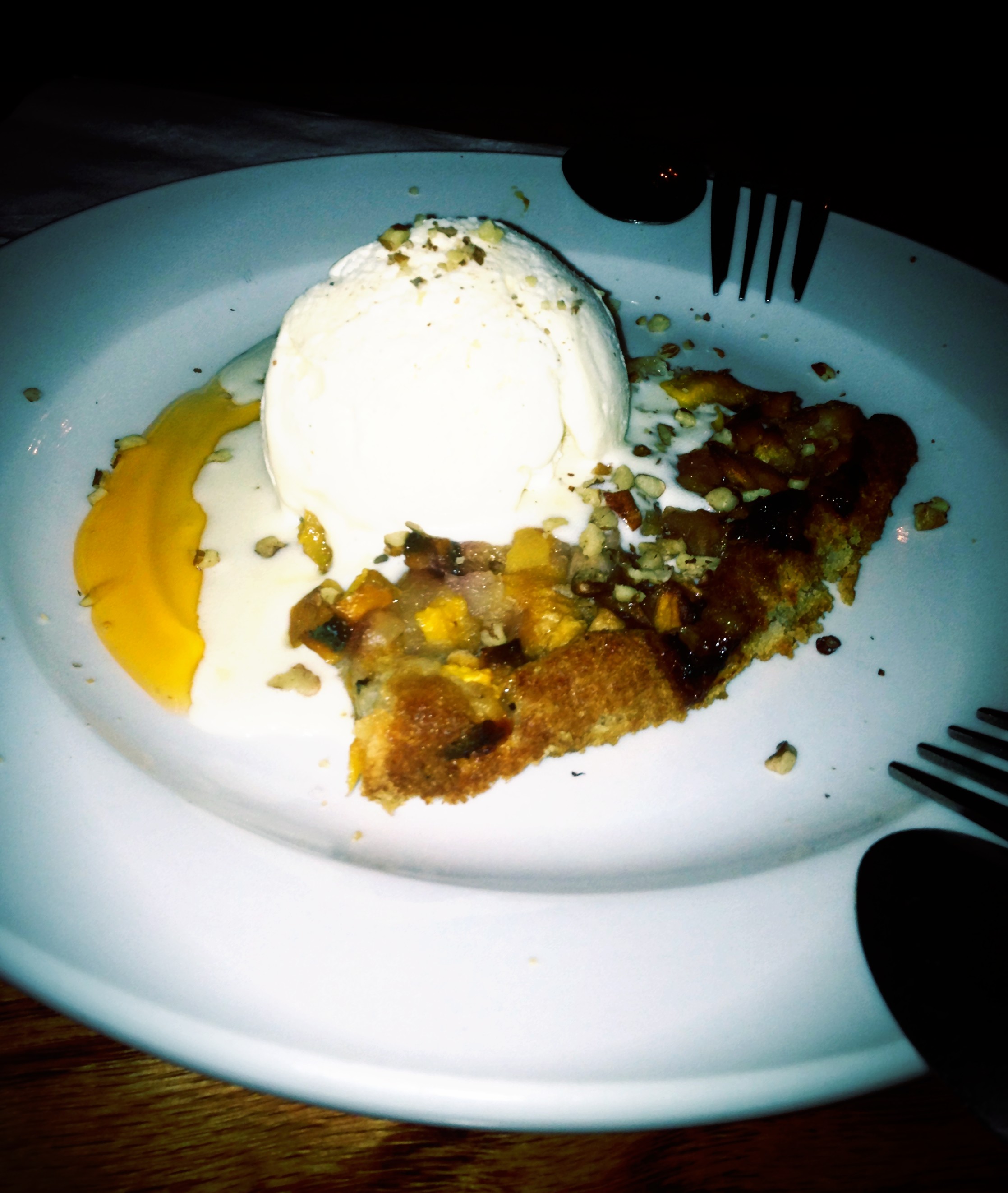For dessert, the boys enjoyed peach cobbler, while Nicole and I indulged in a decadent brownie with coconut ice cream from a local favorite, Woodside Creamery.