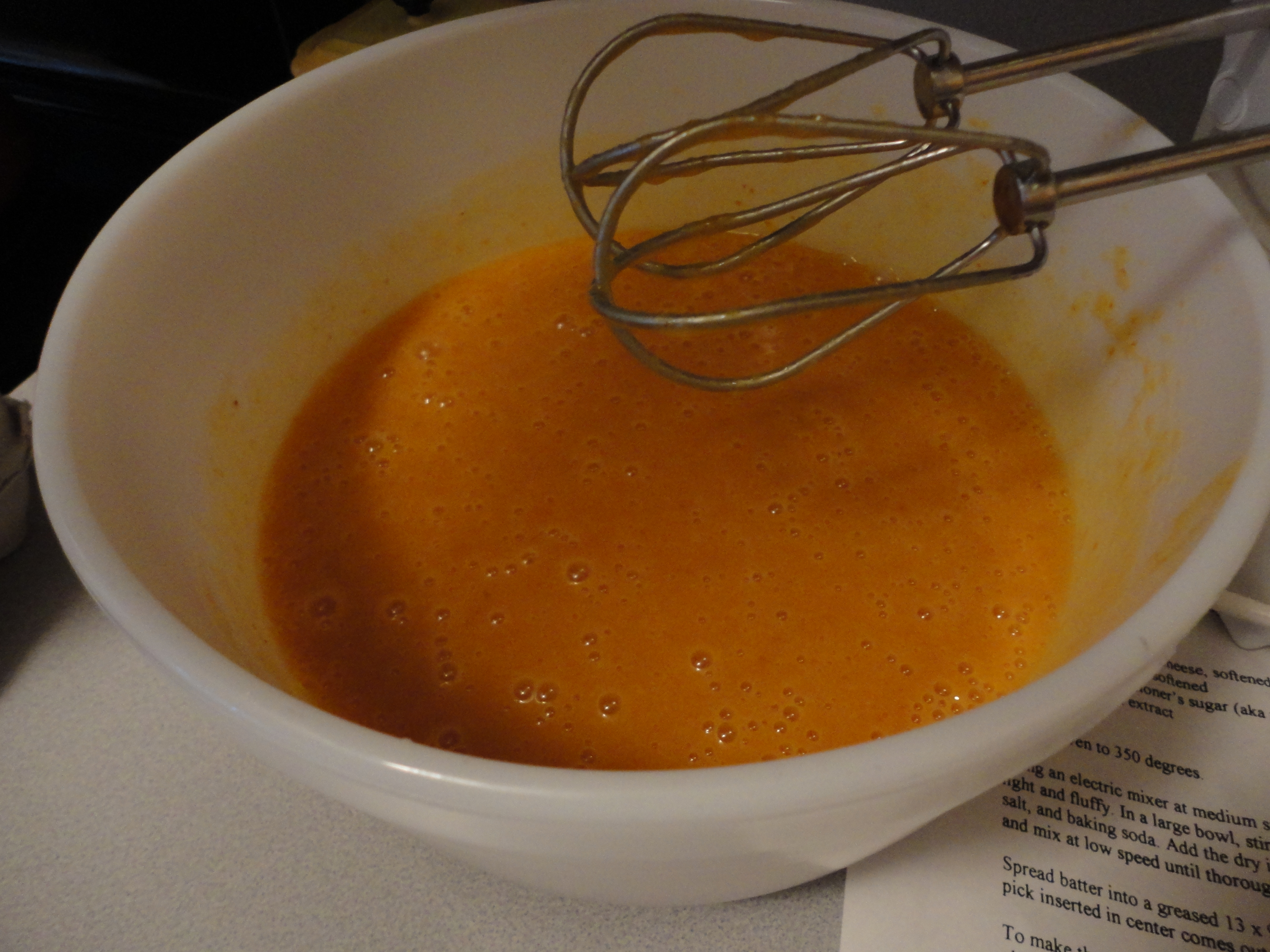 Spoon batter by the tablespoon-full into the mini-muffin tins. Bake for 10 minutes or until a tooth pick inserted in the center comes out clean. Repeat until all the batter is used (makes about 48 mini cupcakes). Let cool completely before frosting. (Adaption: you can also use a greased 9×13 glass baking dish and bake for 30 minutes.)