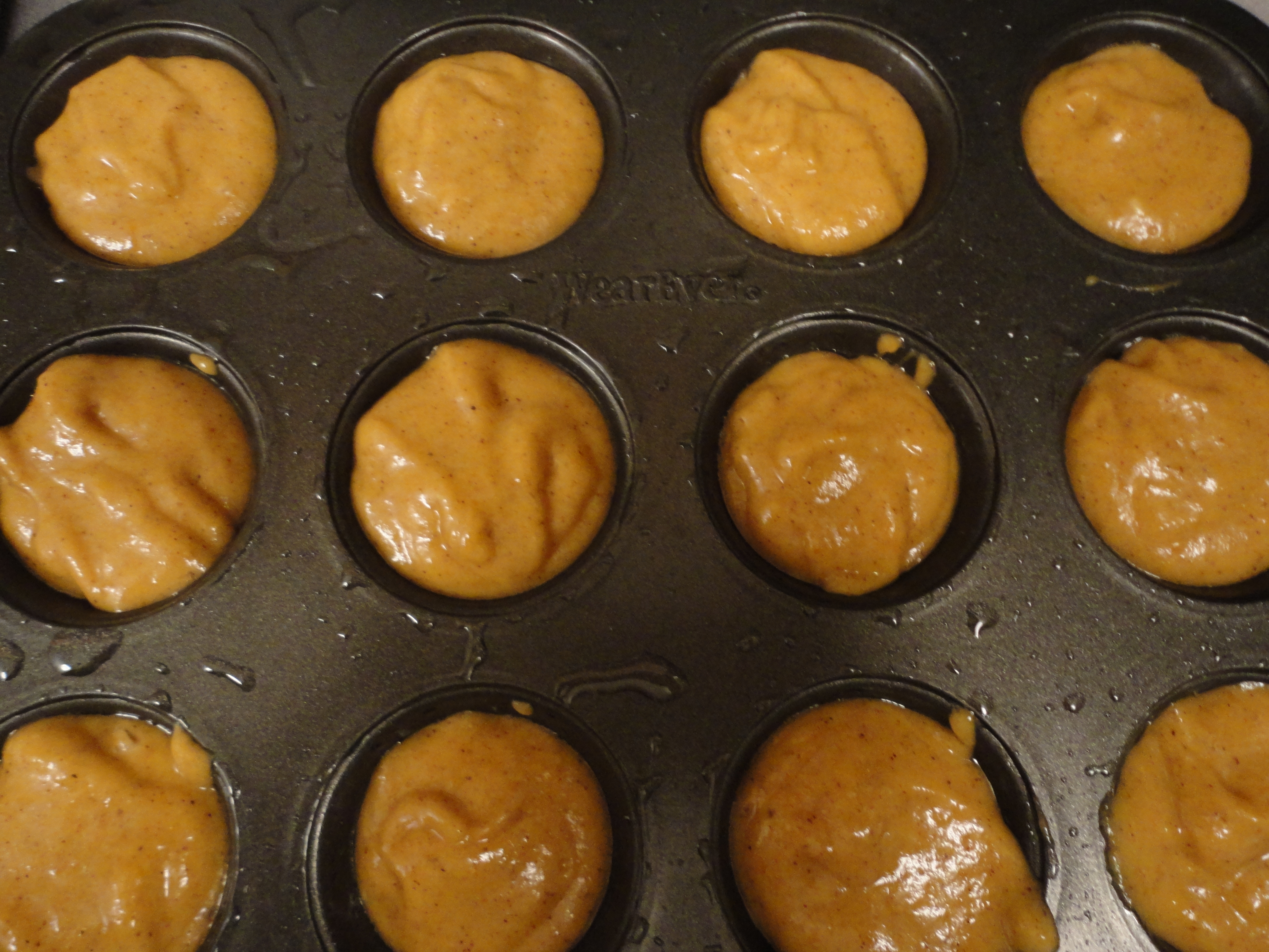 Preheat oven to 350 degrees. Grease two (or one if that’s all you have) mini-muffin tins with vegetable oil.