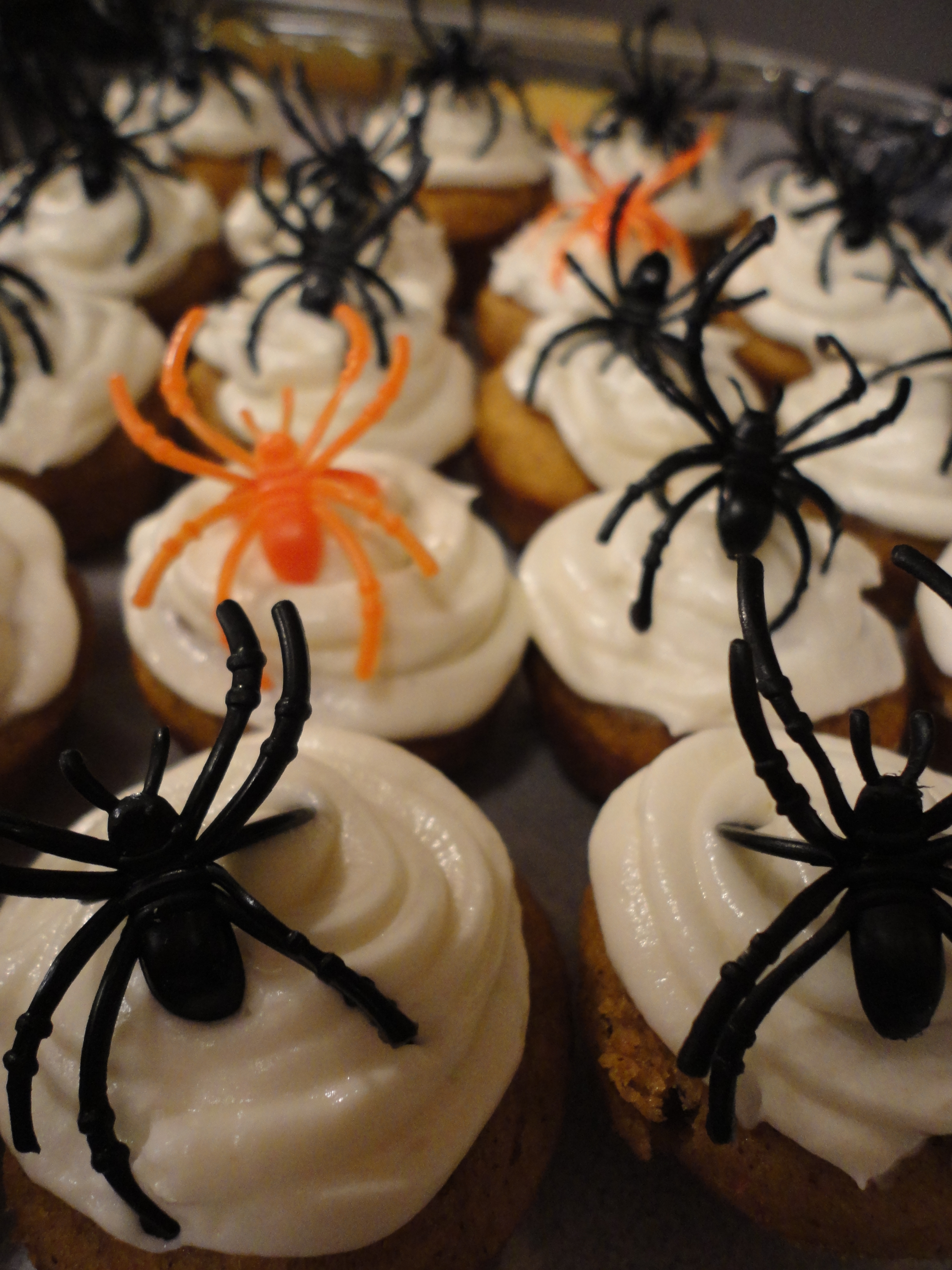 I added some creepy spider rings to my cupcakes to match my costume.