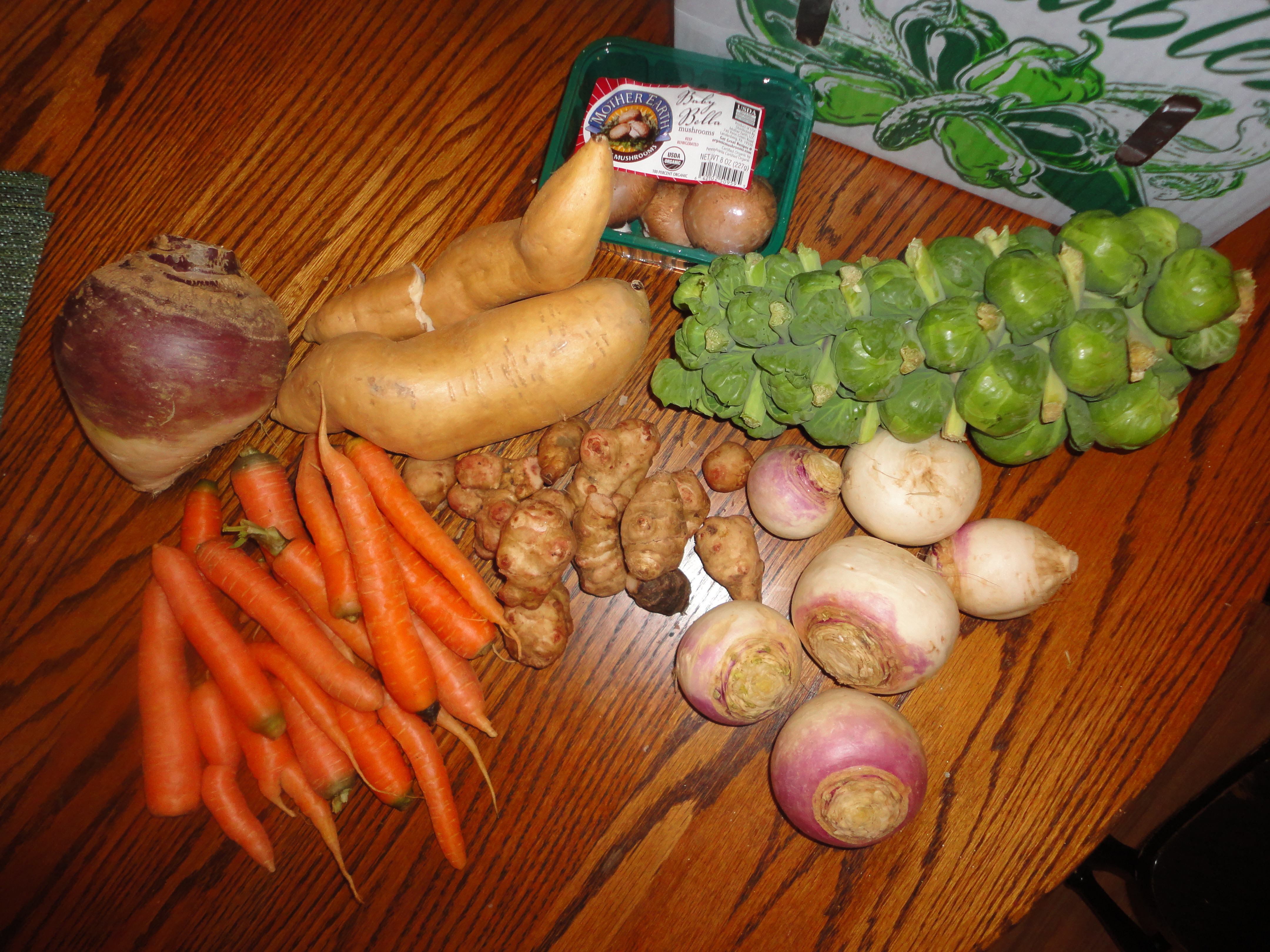 Love it! How were the artichokes? Roots are where it’s at in fall and winter, fruits in spring and summer. I would have bee disappointed to not have gotten the greens from the turnip and carrot, tho.
