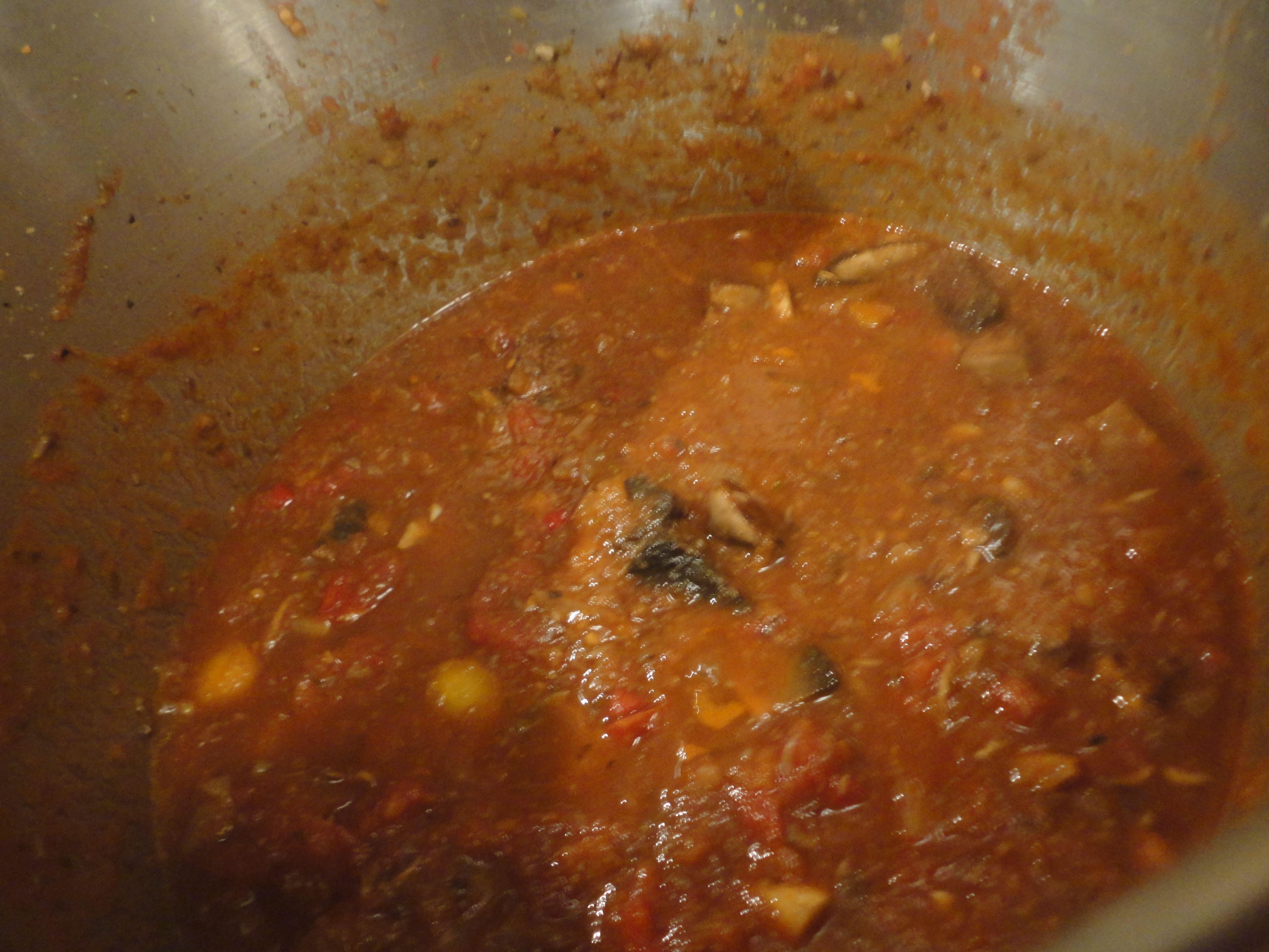 And what attractive peppers those are! This really does sound delish, although Peppermeister doesn’t eat mushrooms, so this is, I think, the first time the two have met.