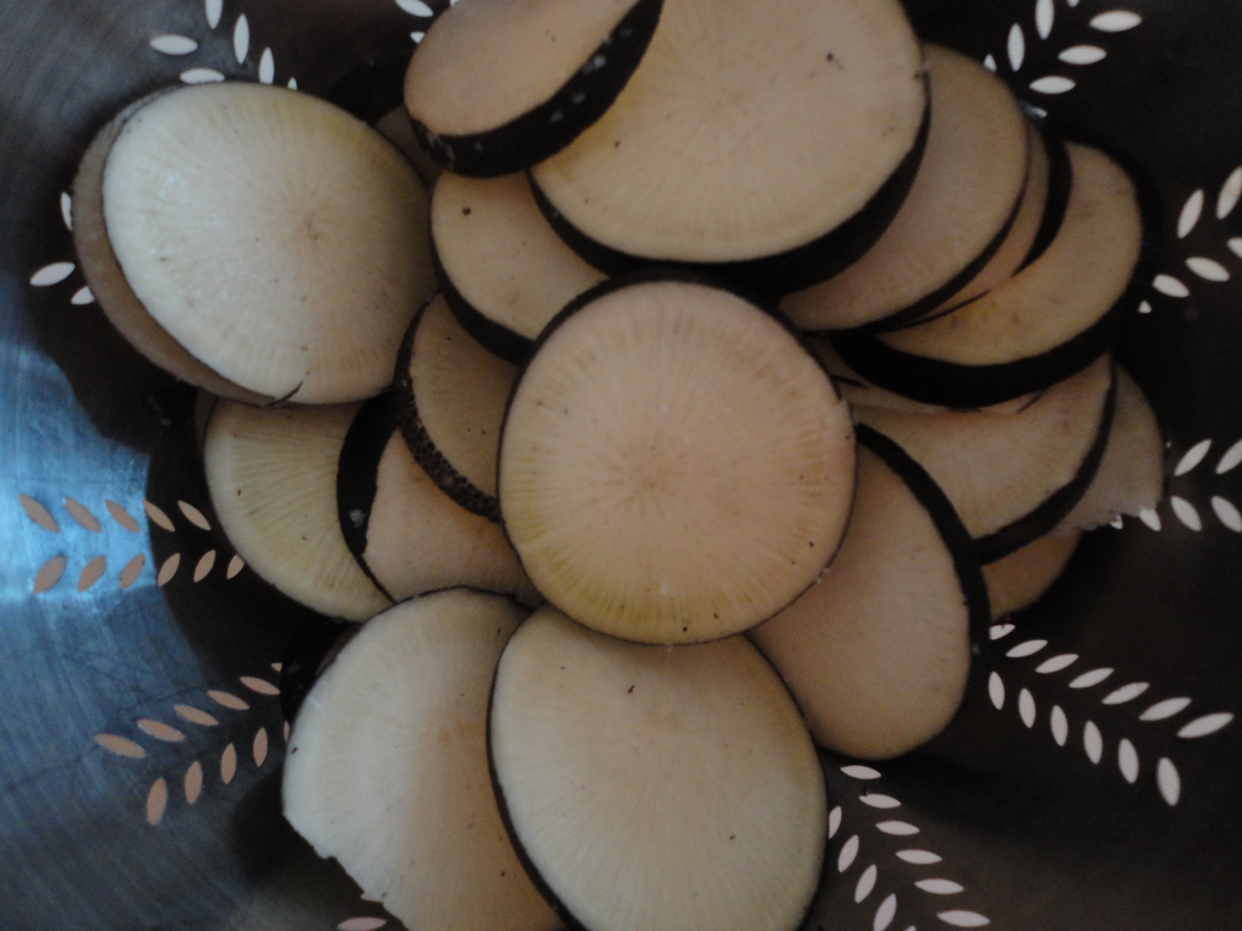 5 black radishes, sliced thickly
