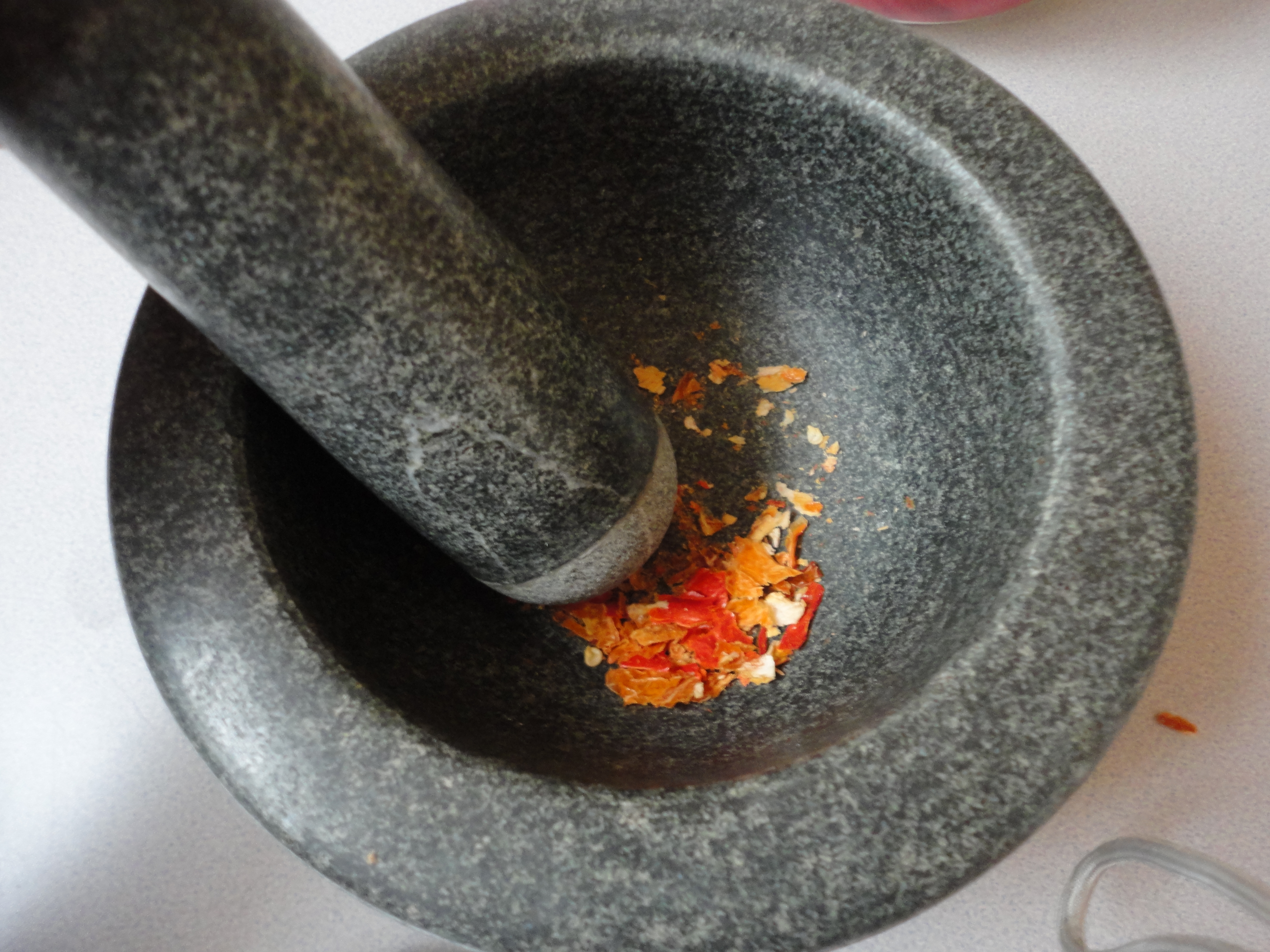 I rinsed out my mortar and pestle last night, which had remnants of that crushed pepper in it and it got me again! I was coughing so much that my eyes were watering. And my fiingers burned. Peppermeister strikes again!