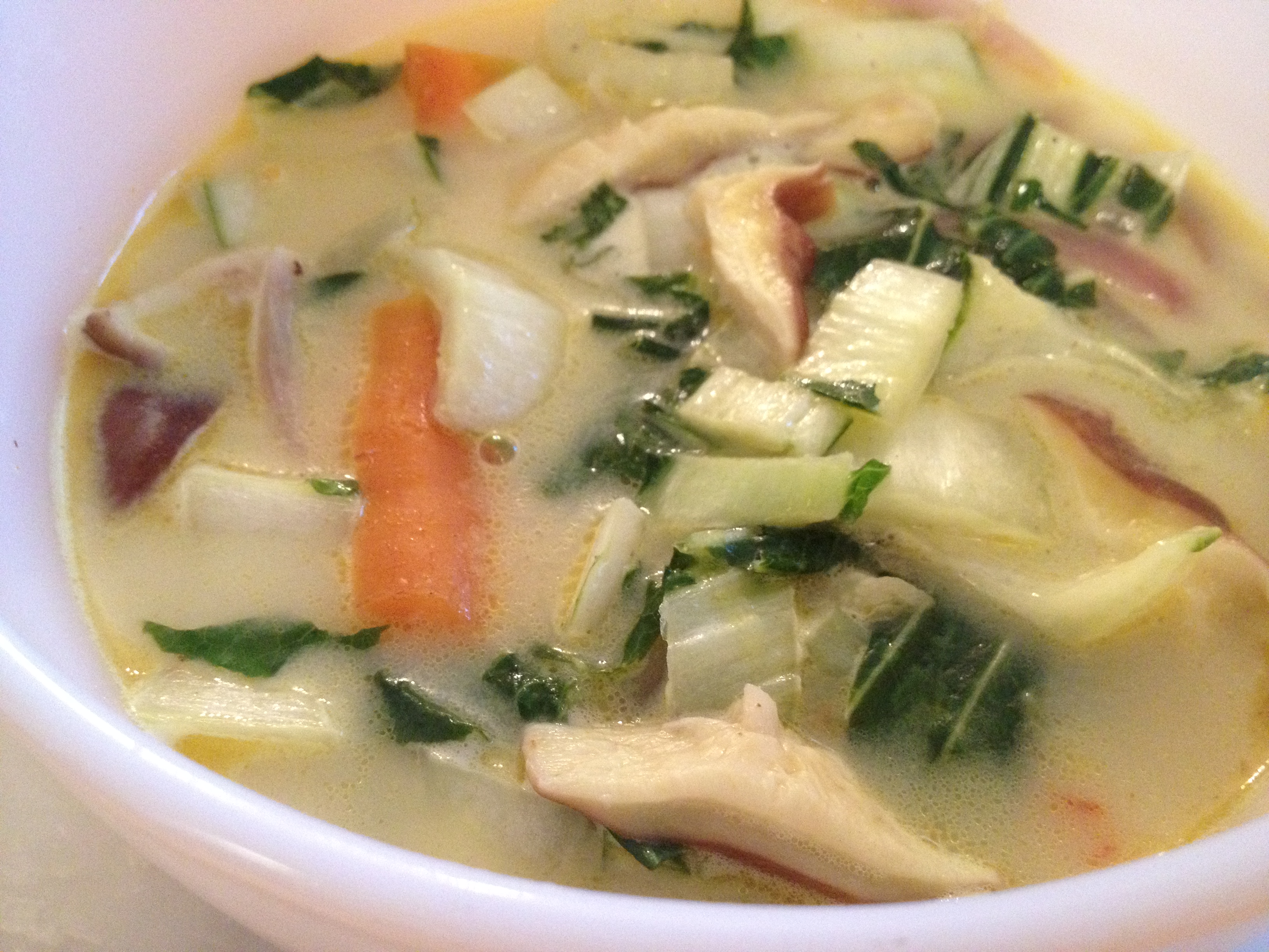 After recovering from what turned out to be a real challenge, I was ready for something hot and spicy once again. Cue my CSA from Lancaster Farm Fresh Cooperative. The shiitake mushrooms, carrots, and red onions in Week 6’s box combined with the bok choy and garlic from Week 5 turned into a fantastic Thai-inspired soup.