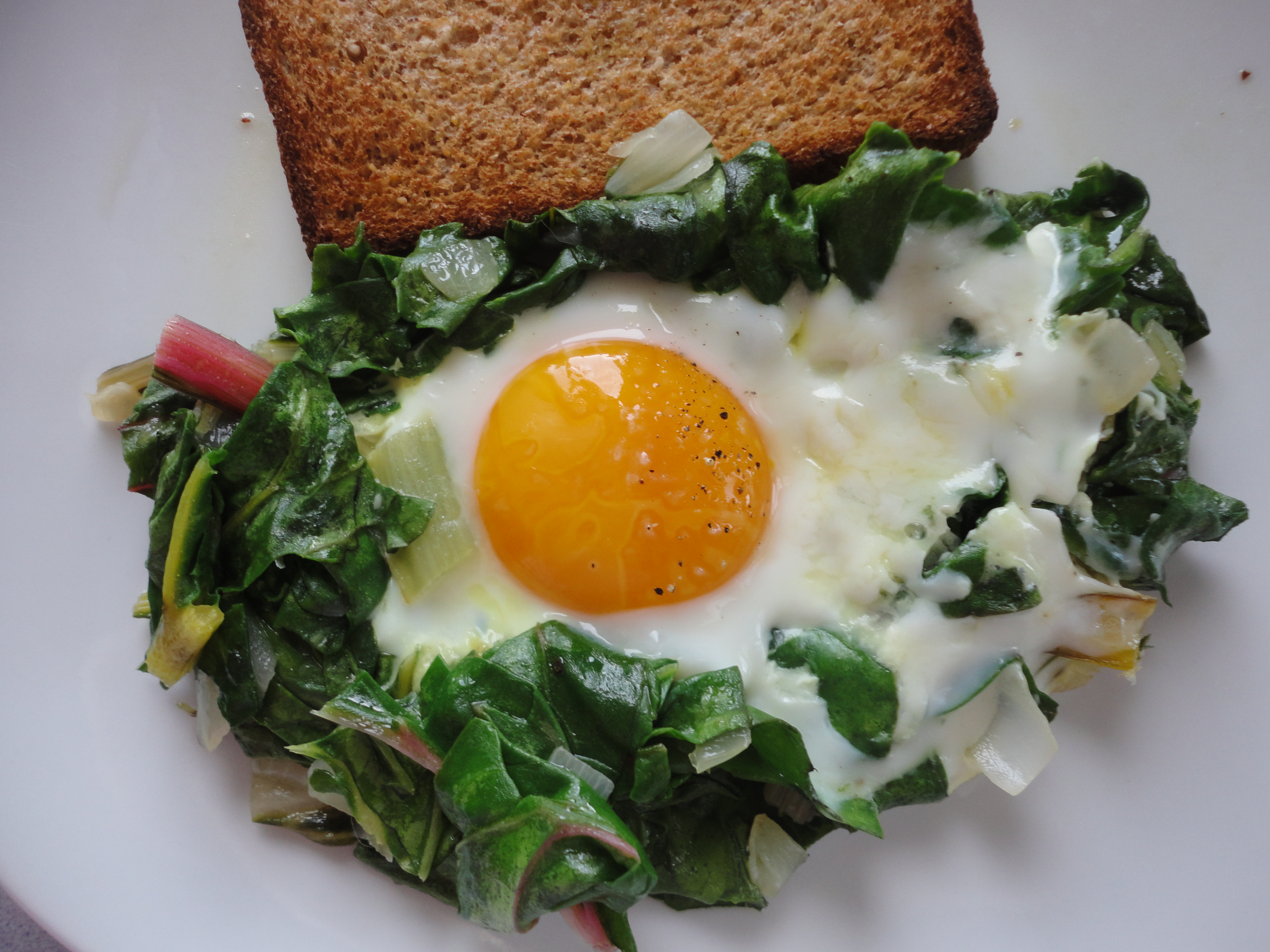 Sauteed Rainbow Chard with a Turkey Egg Topper