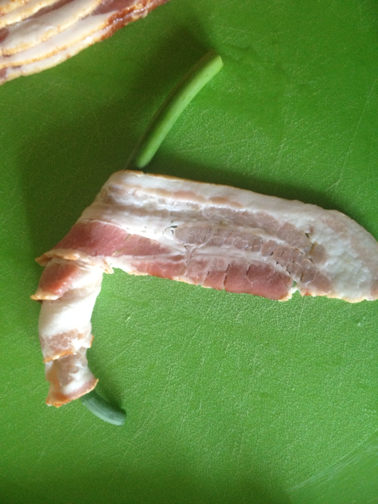 6 (or as many garlic scapes and bacon pieces you can get your hands on- the more the merrier) eight-inch, tender pieces of garlic scapes